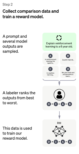 In the supervised learning step, the language model is tasked with generating several answers to a prompt, and humans tell it which answers are the best. Also called a “fine-tuning” step, this human feedback specializes the model for certain tasks. For example, ChatGPT can respond to prompts for writing an email, but a model with a lot more of its human feedback geared toward email could perform better at the task.